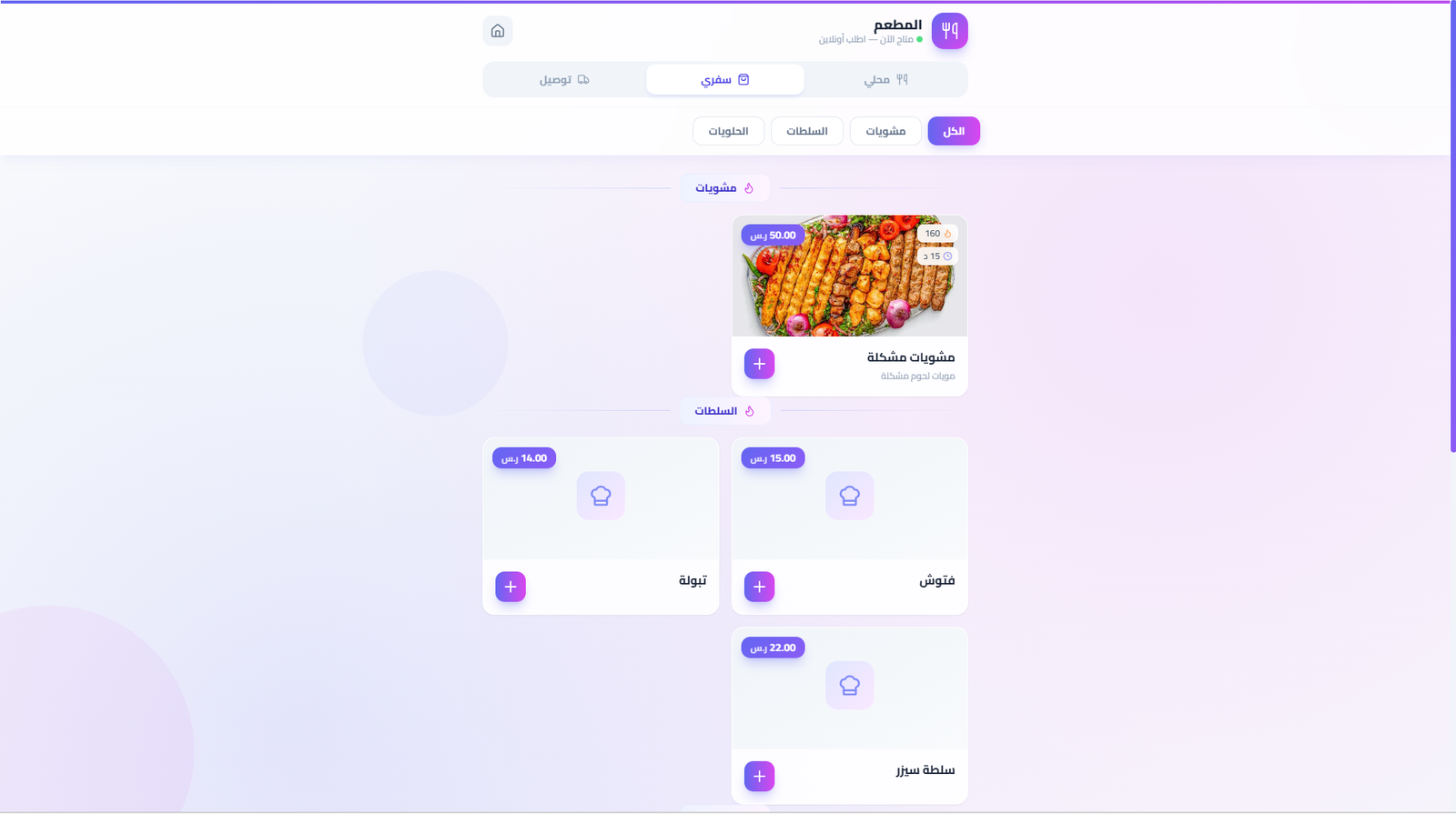 نظام شامل لإدارة الطلبات، المخزون، المحاسبة والموظفين بكفاءة عالية. نقطة بيع متطورة، قائمة QR تفاعلية، ولوحة تحكم ذكية.